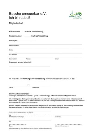 Sie wollen gern Mitglied werden in unserem Verein "Basche erneuerbar e.V."?
